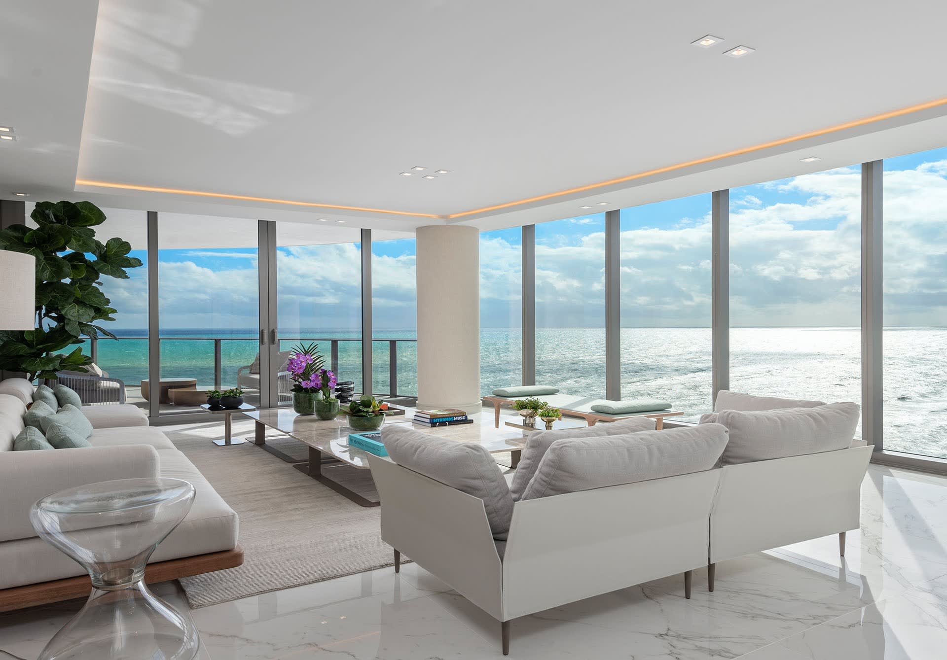 Designed to provide sweeping views of the Atlantic Ocean, the tower features cascading terraces with ample 360-degree views. Penthouse gardens dissolve at its uppermost crest, creating the silhouette of an impressive yacht or cruise liner. In addition, The Residences features a grand porte-cochere and lush landscaping created by Arquitectonica GEO.